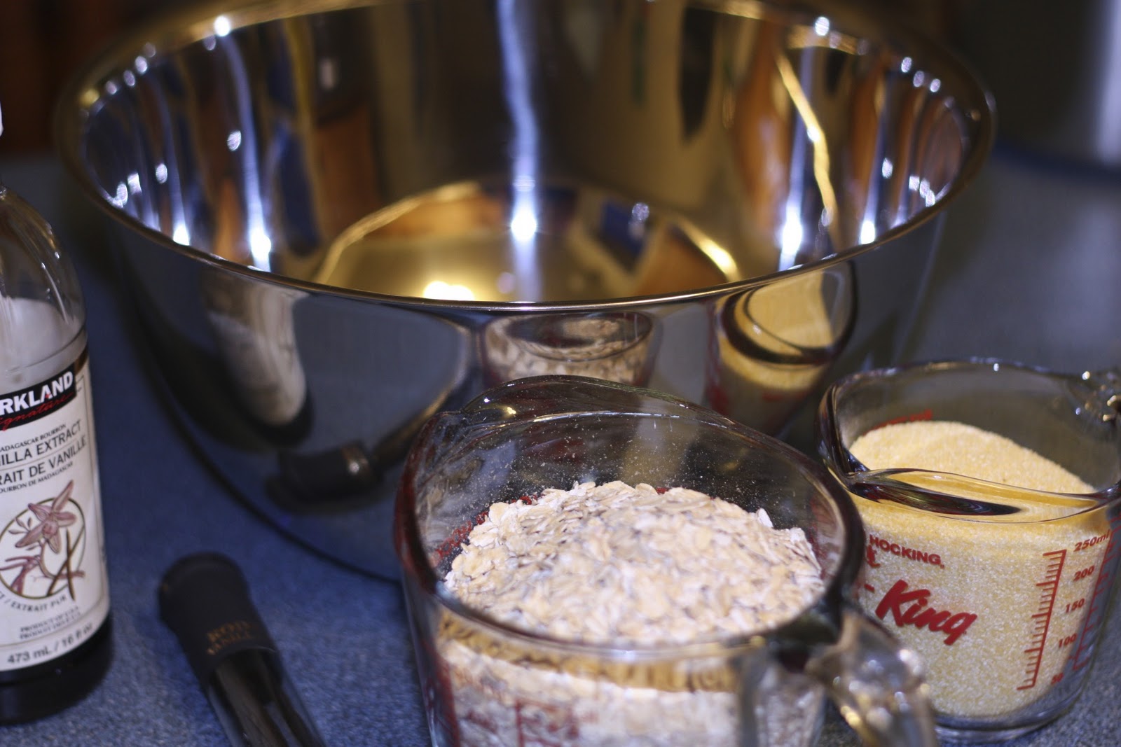 In a large mixing bowl combine the first 9 ingredients (not the apples or currents) and stir to combine. Allow this to sit for about 20 minutes to allow the grains to hydrate and absorb the flavors.